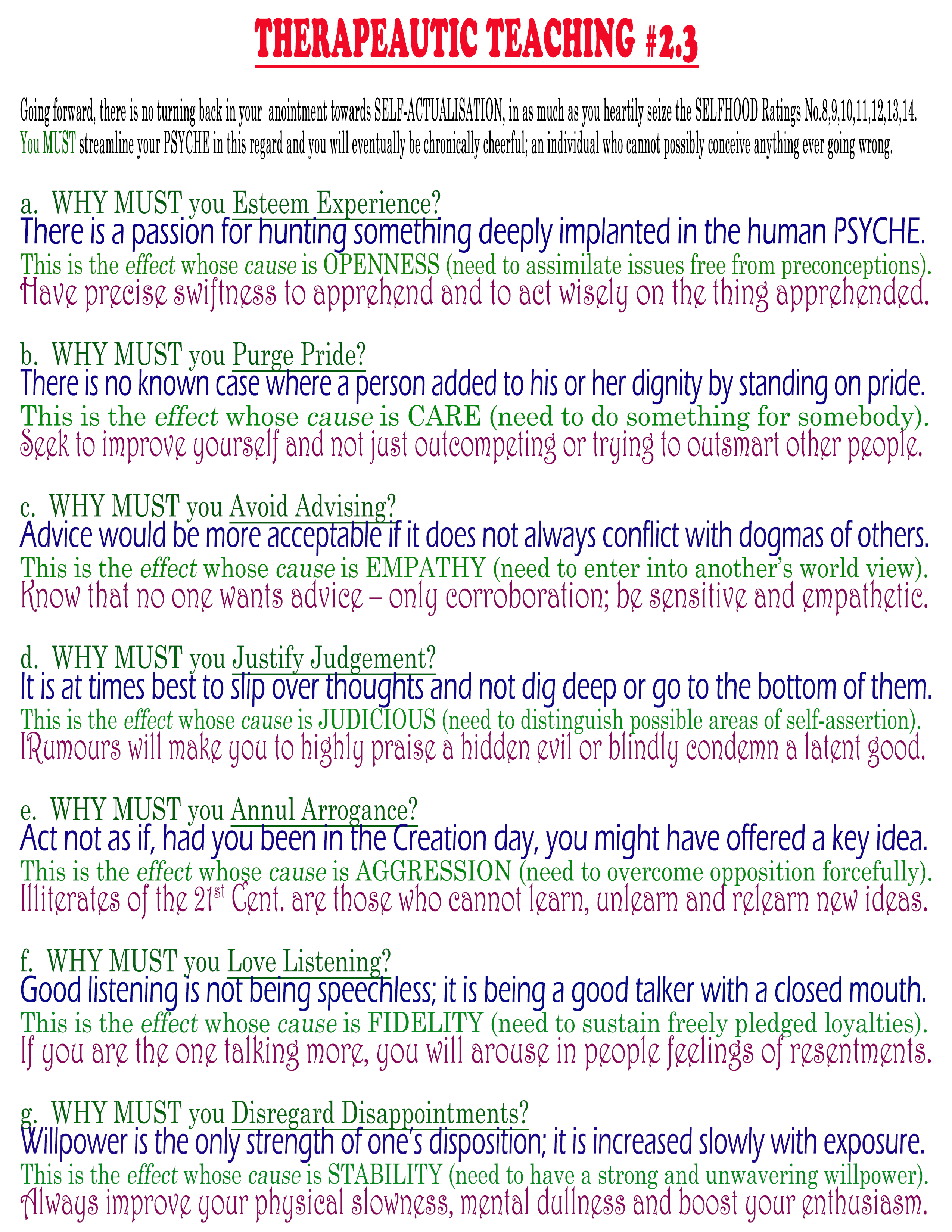 #2.1. PRAY #2.2. BELIEVE Verily, verily, your guiding generalisations and ‘Basic Beliefs’; #2.3. INTERACT #2.4. WORK #2.5. PENETRATE #2.6. LIVE #2.7. ACTUALISE Verily, verily, you are at the citadel of ‘Holistic Humanness’; |