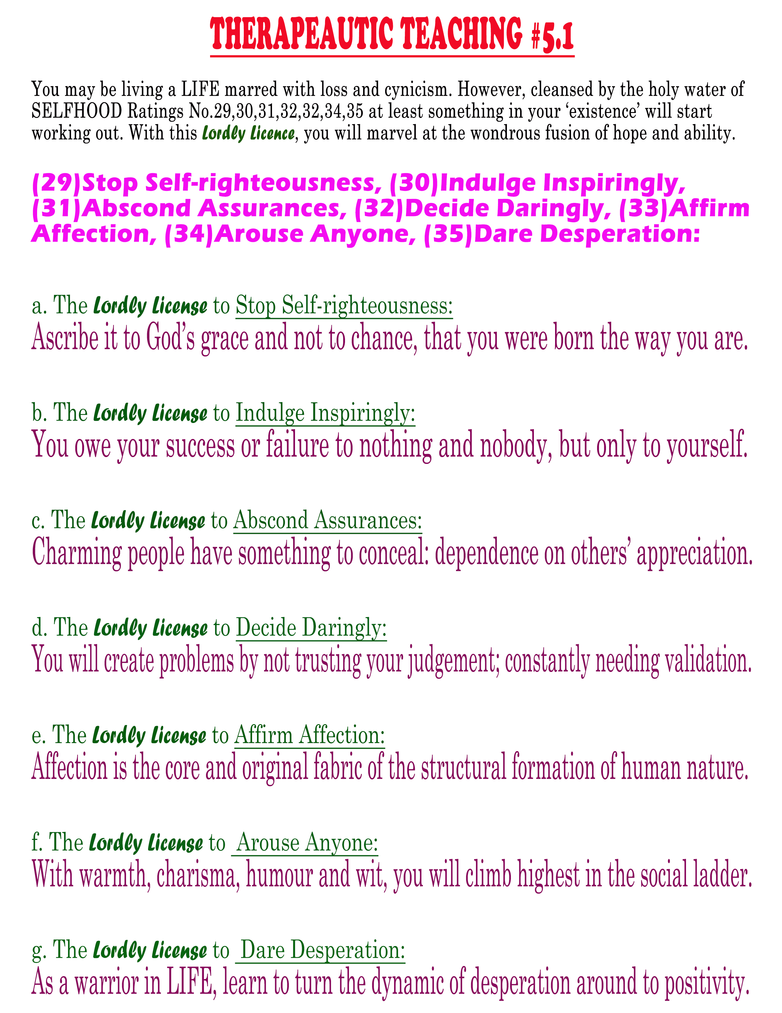 R#31. On having the tendency of seeking ASSURANCE from others for your actions. O thee TAO, behold, Intimately IRRIGATE your hallowed hope to ABSCOND ASSURANCES.--->